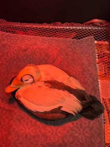 De Brileider is een zee-eend die van nature voorkomt in arctische gebieden en normaal gesproken niet in West-Europa wordt aangetroffen. Bij binnenkomst bij Ecomare verkeerde de vogel in zorgwekkende conditie. Na een eerste beoordeling bleek zijn toestand kritiek. Sindsdien ontvangt hij intensieve zorg, gericht op stabilisatie en herstel. Het verloop is op dit moment nog onzeker en zijn situatie blijft kwetsbaar.